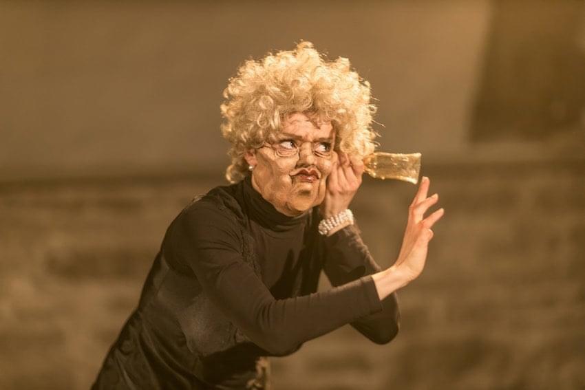 Opinnäytetyönä toteutettu yhteistyö, joka tutki fyysisen teatterin keinoja tekstilähtöisen näytelmän toteutuksessa.