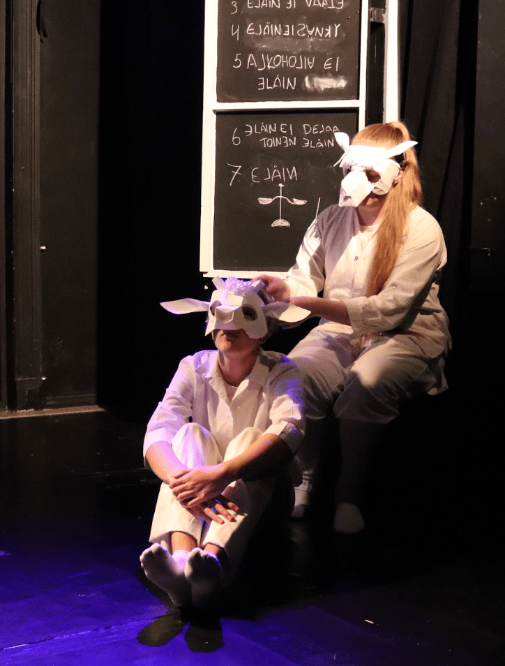 George Orwellin klassikkoteoksen uudelleen dramatisointi, joka toteutettiin naamioteatterin keinoin.